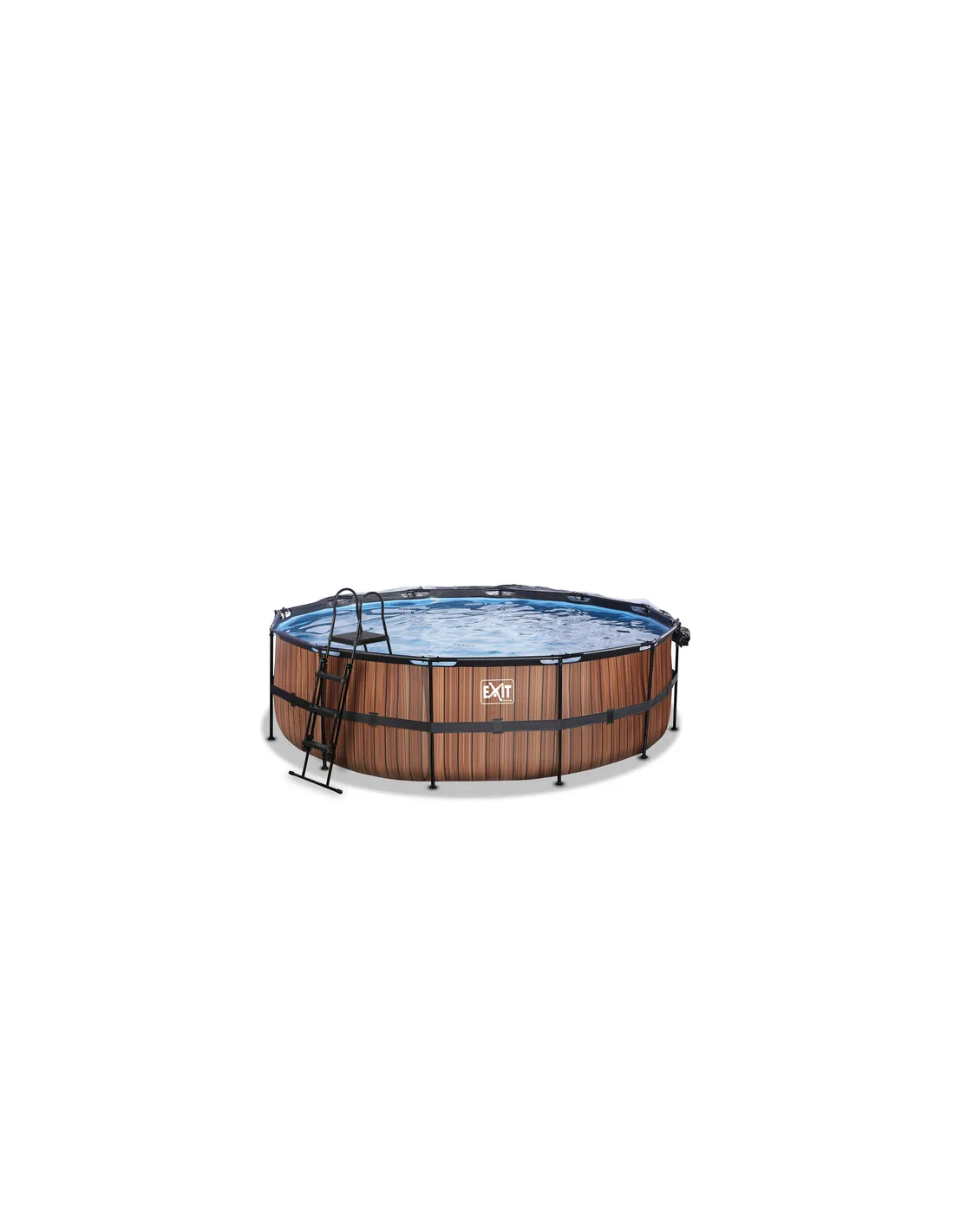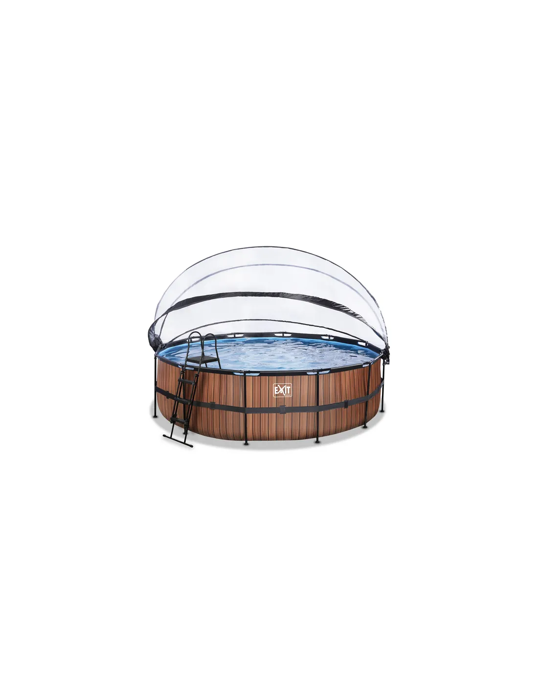 EXIT Piscina "Wood" ø488x122 cm con filtro a sabbia e cupola protettiva - Marrone