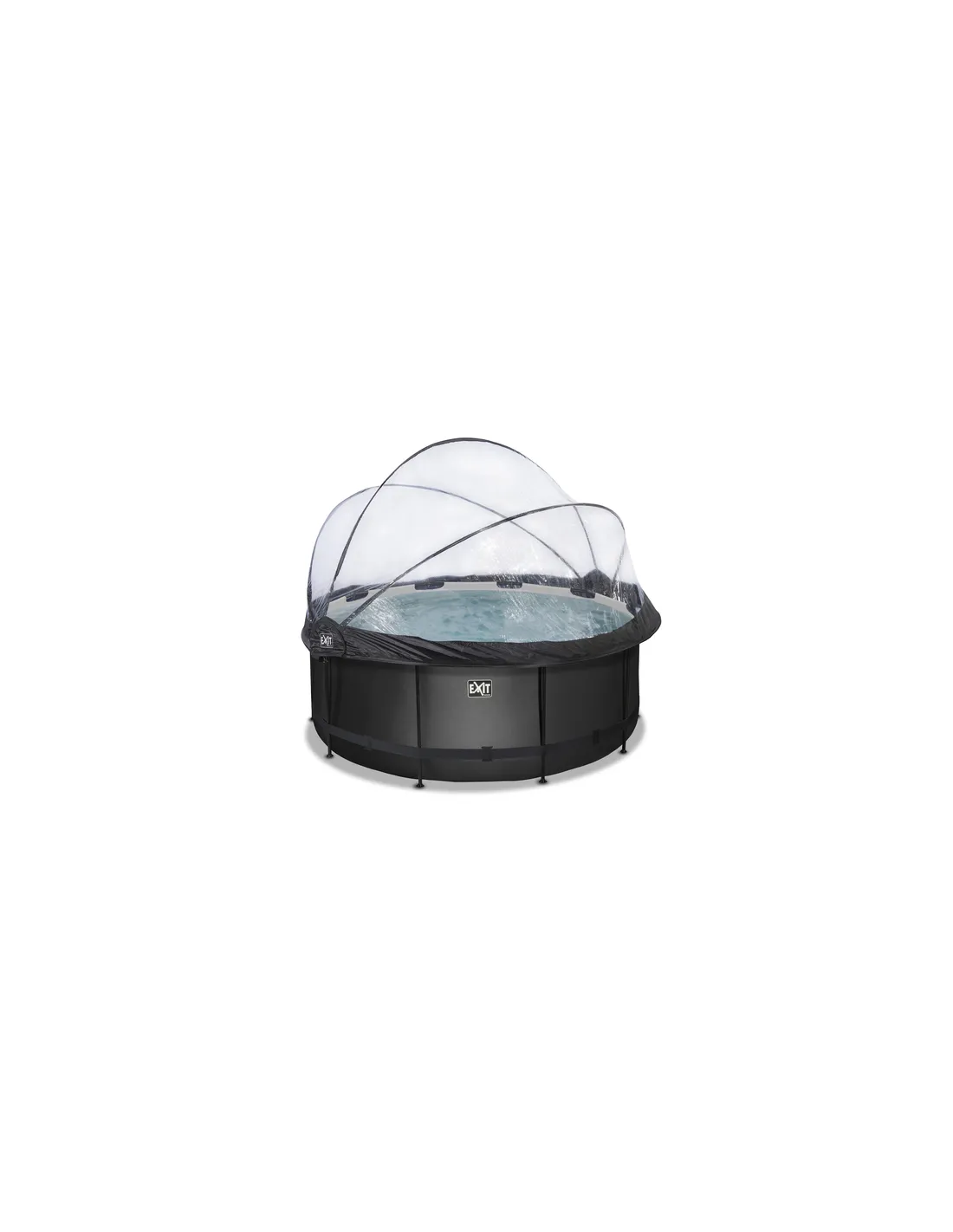 EXIT Piscina "Black Leather" ø360x122cm con filtro a sabbia, cupola protettiva e riscaldamento acqua - Nera