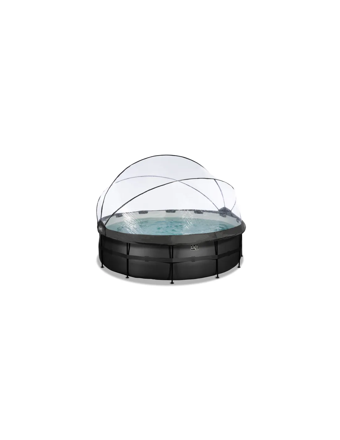 EXIT Black Leather pool ø450x122cm with dome and sand filter and heat pump - black Piscina con bordi Piscina rotonda 15233 L Ne