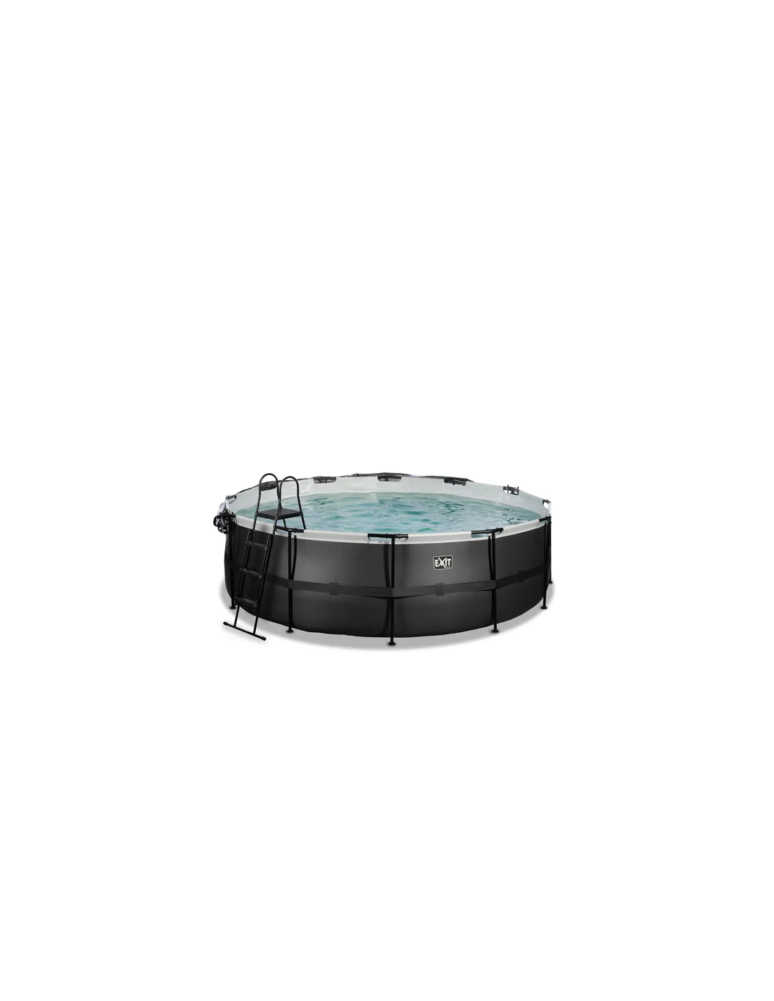 EXIT Piscina "Black Leather" ø450x122cm con filtro a sabbia, cupola protettiva e riscaldamento acqua - Nera