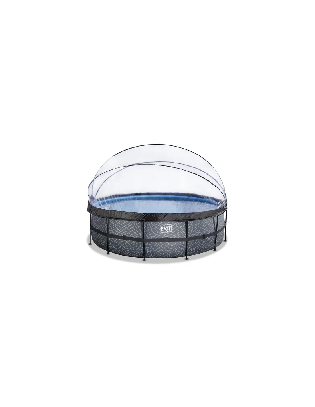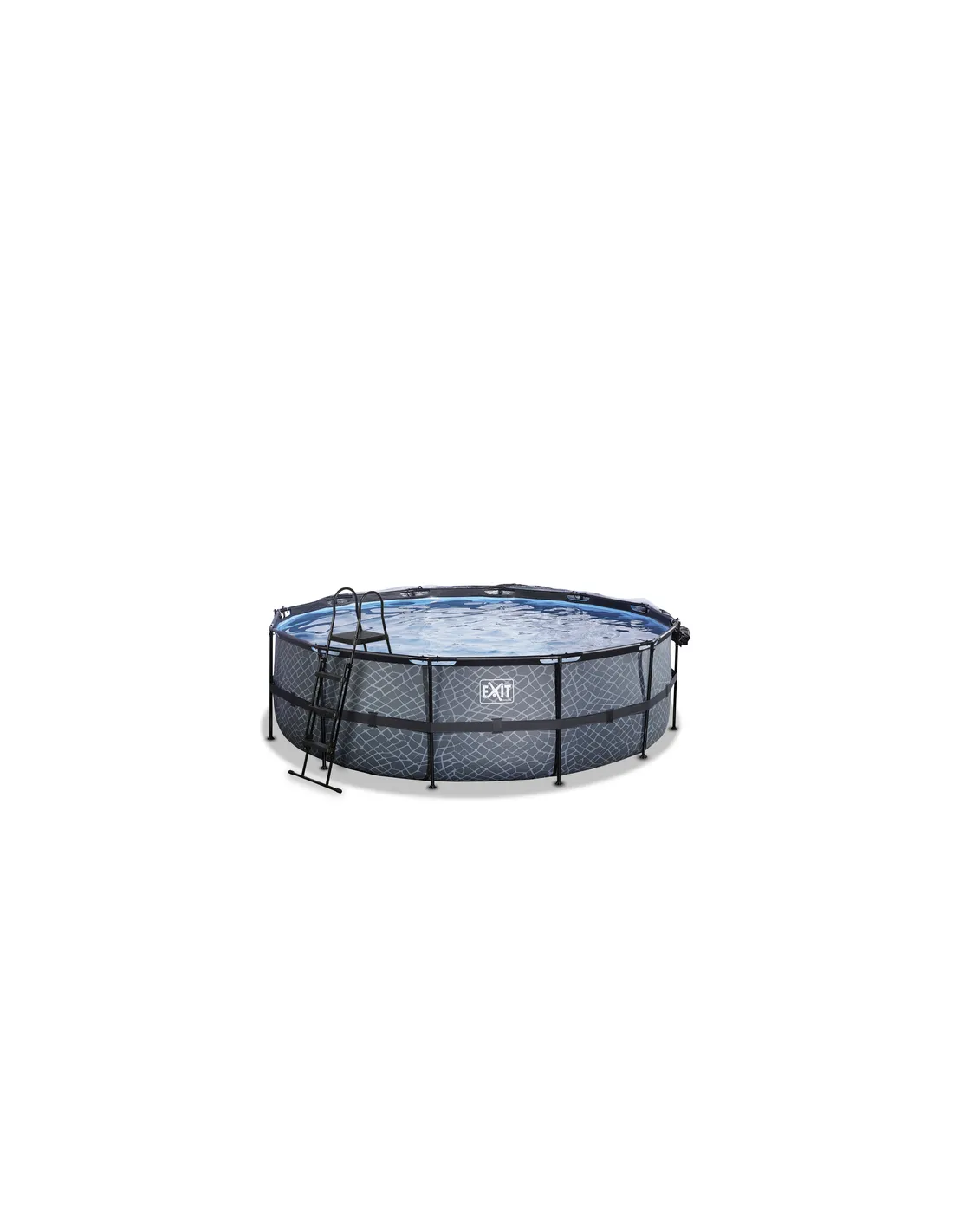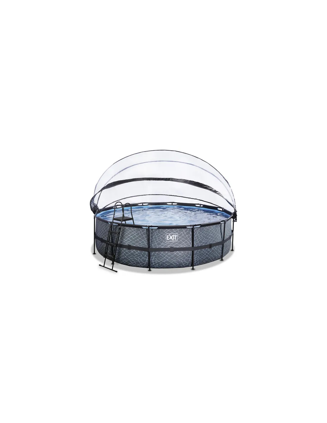 EXIT Piscina "Stone" ø488x122cm con filtro a sabbia, cupola protettiva e riscaldamento acqua-Grigia