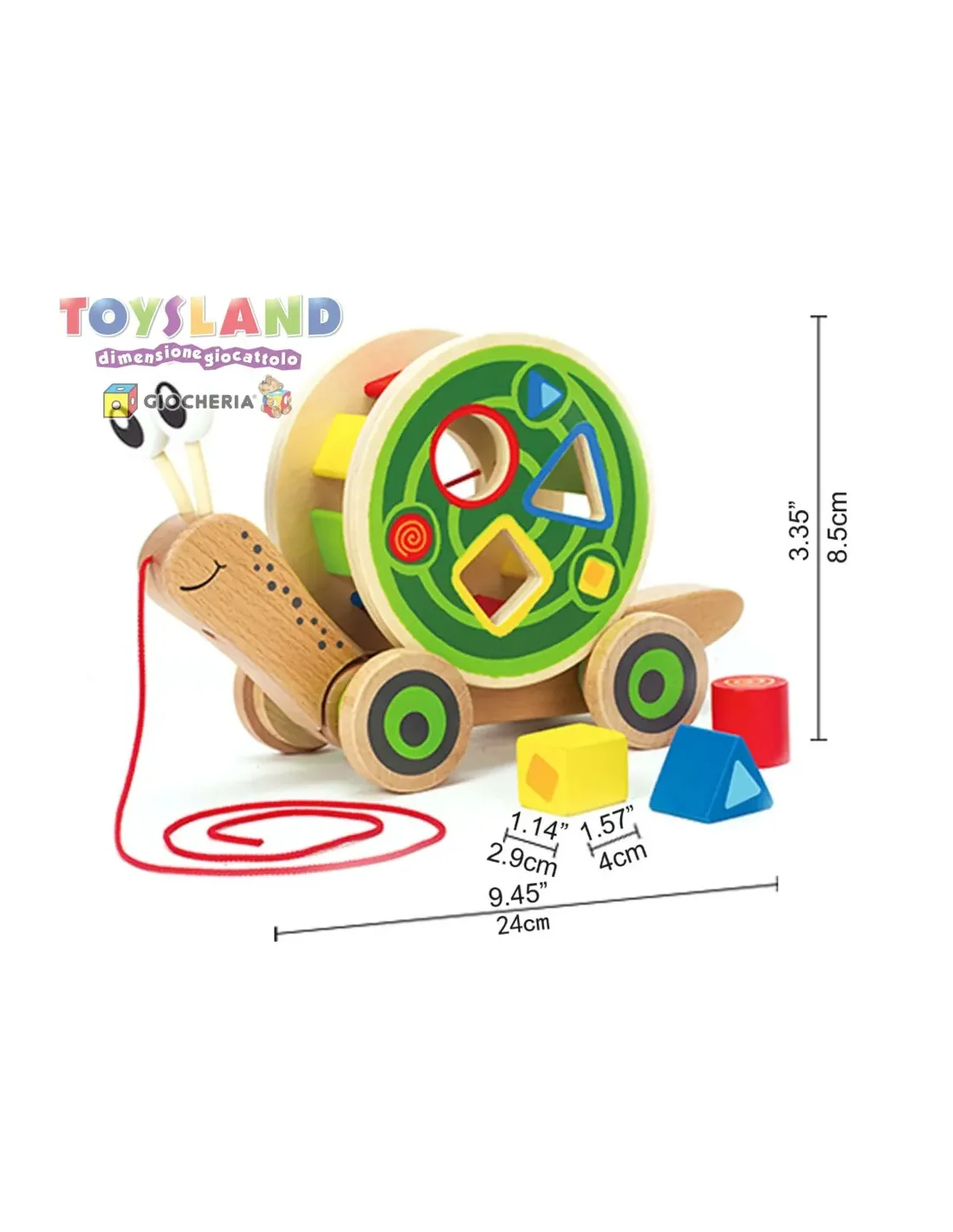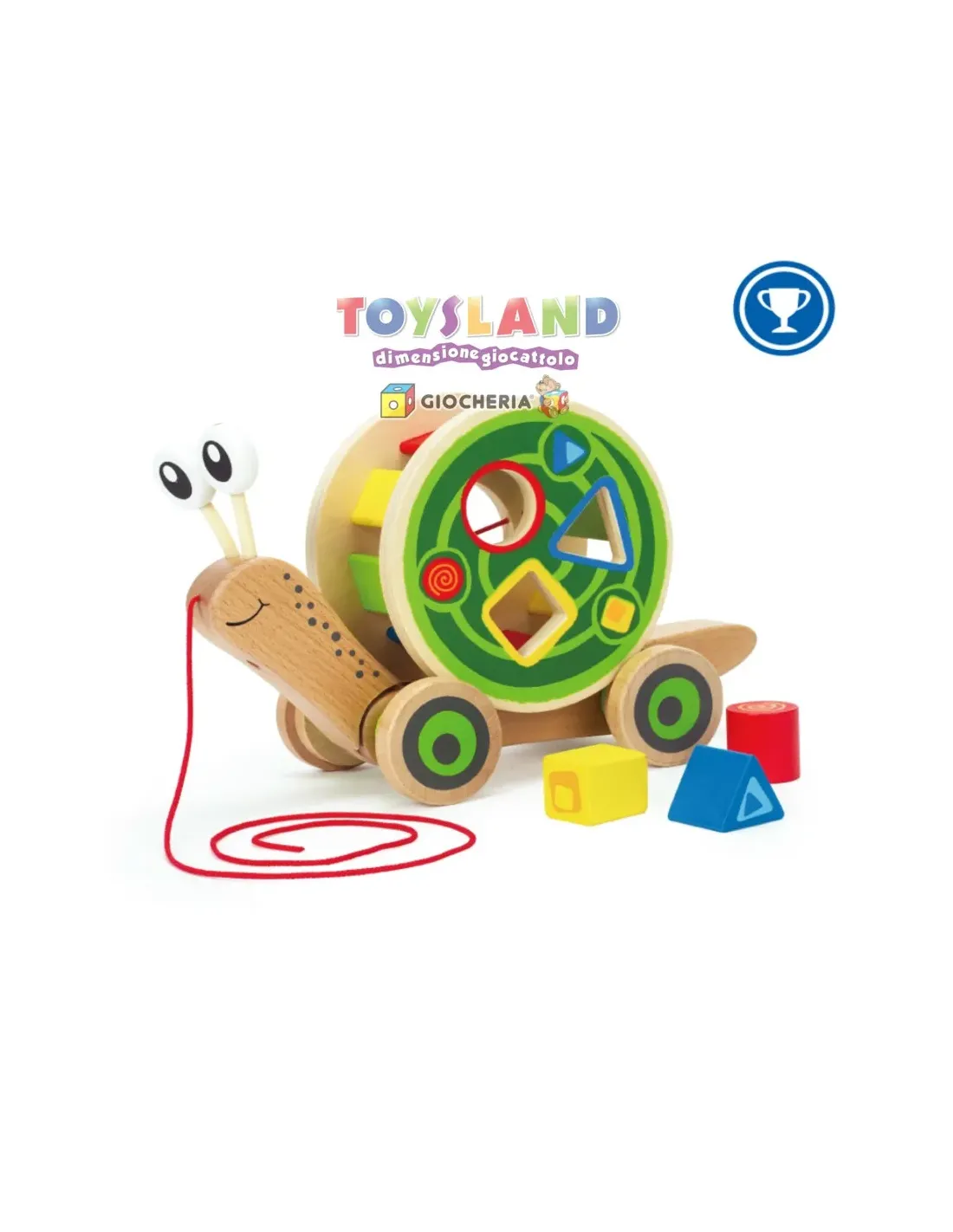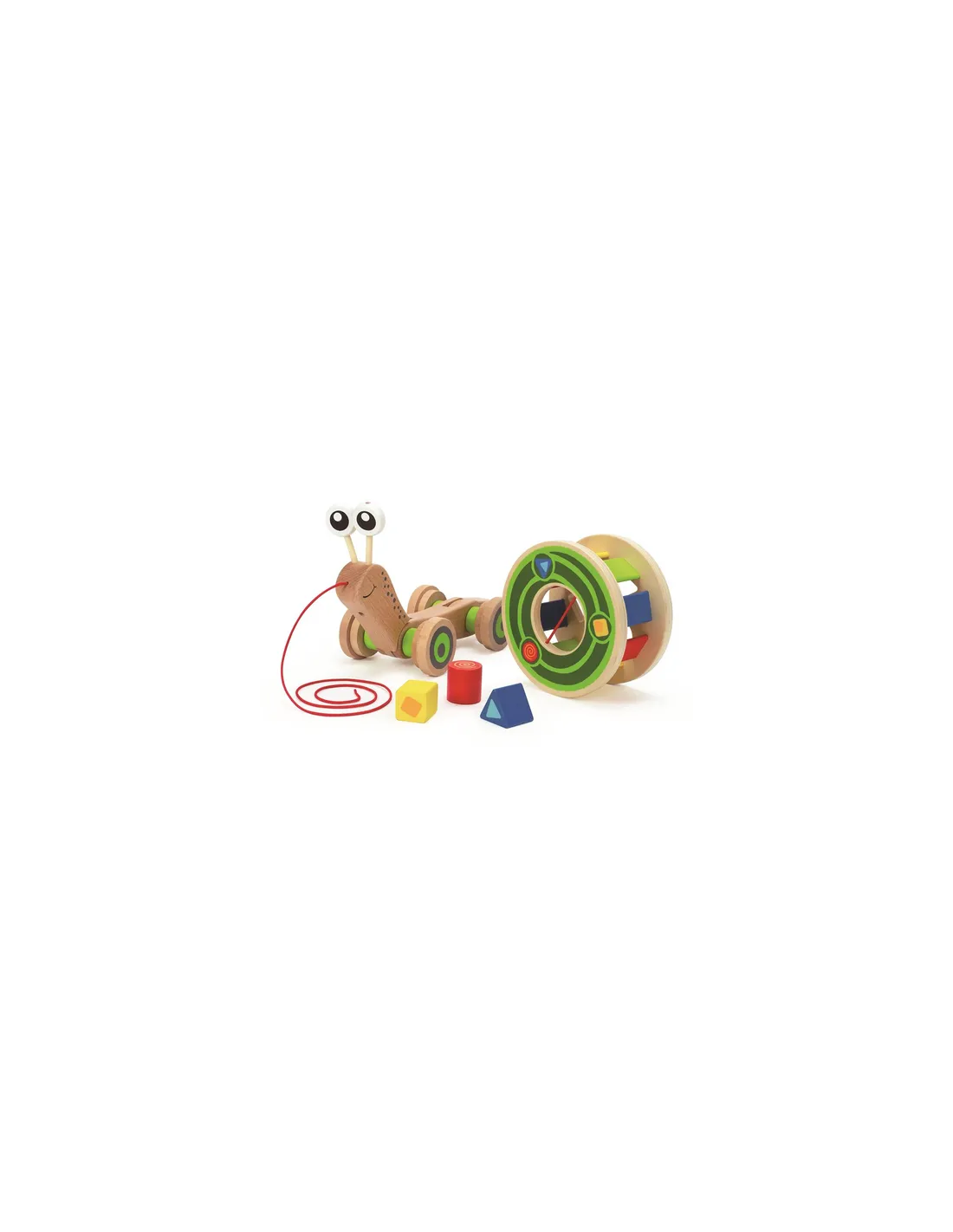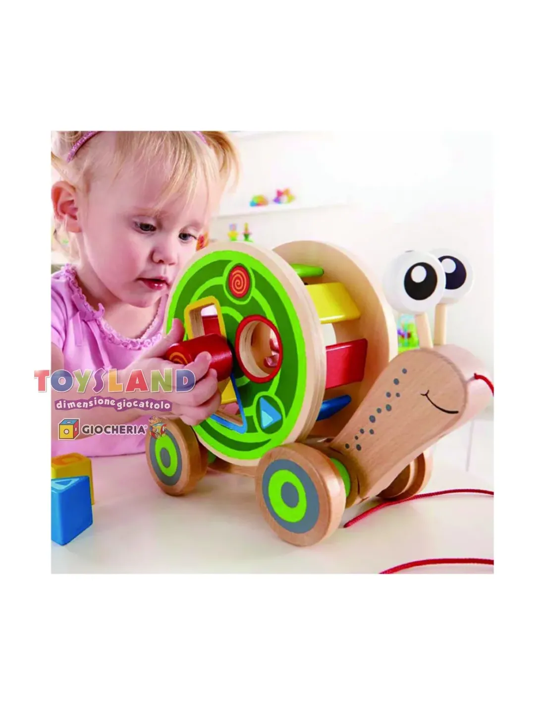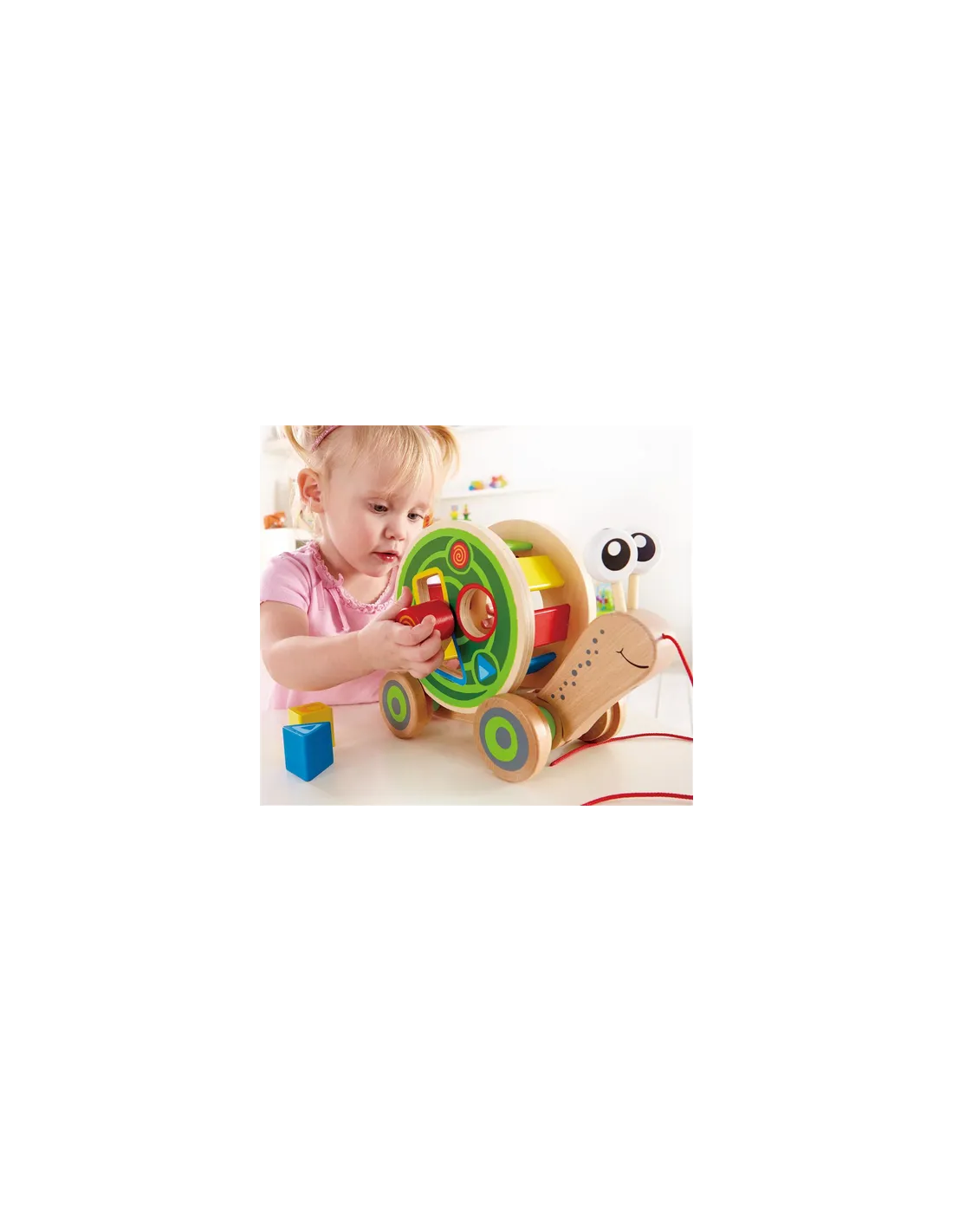 Simpatica lumachina che ti seguirà passo dopo passo e porterà con sé il suo prezioso guscio carico di blocchi di legno ma se preferisci alleggerirla potrai rimuovere il suo tondo guscio e farla "correre più veloce". E se sei stanco e vuoi fermarti potrai giocare con il suo guscio abbinando forme e colori!