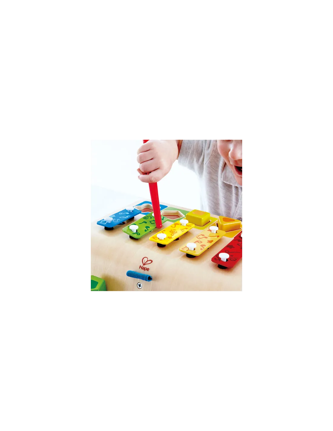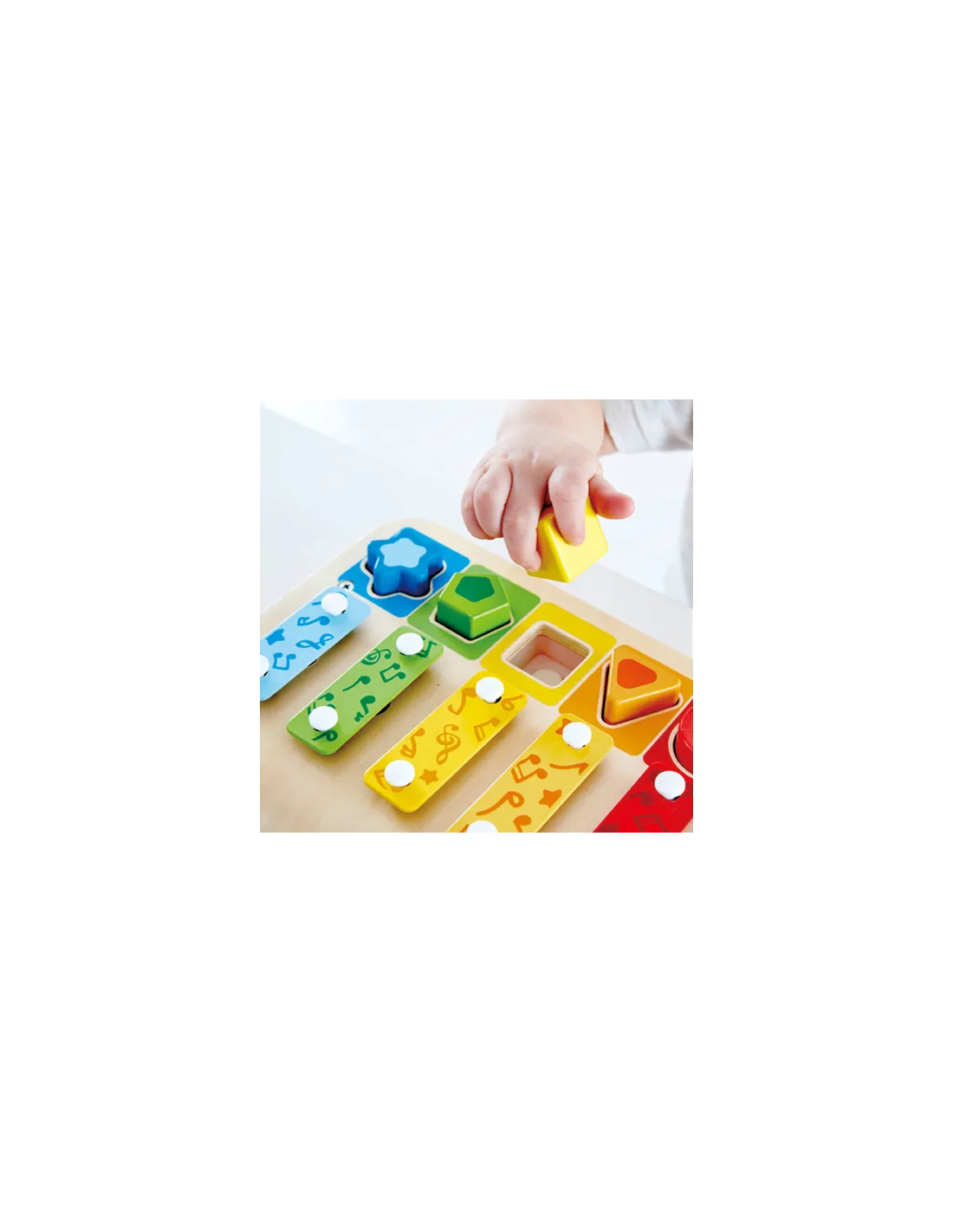 È un pianoforte? Un puzzle? O forse uno xilofono? In realtà è un giocattolo musicale che comprende tutte e tre le cose in un unico design semplice e colorato. Usalo come giocattolo musicale o come puzzle per insegnare ai bambini e bambine le forme, i colori e i suoni, il tutto mentre si divertono al massimo.
