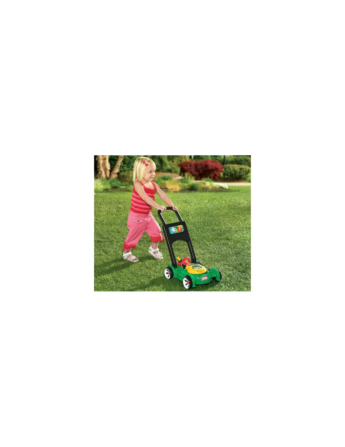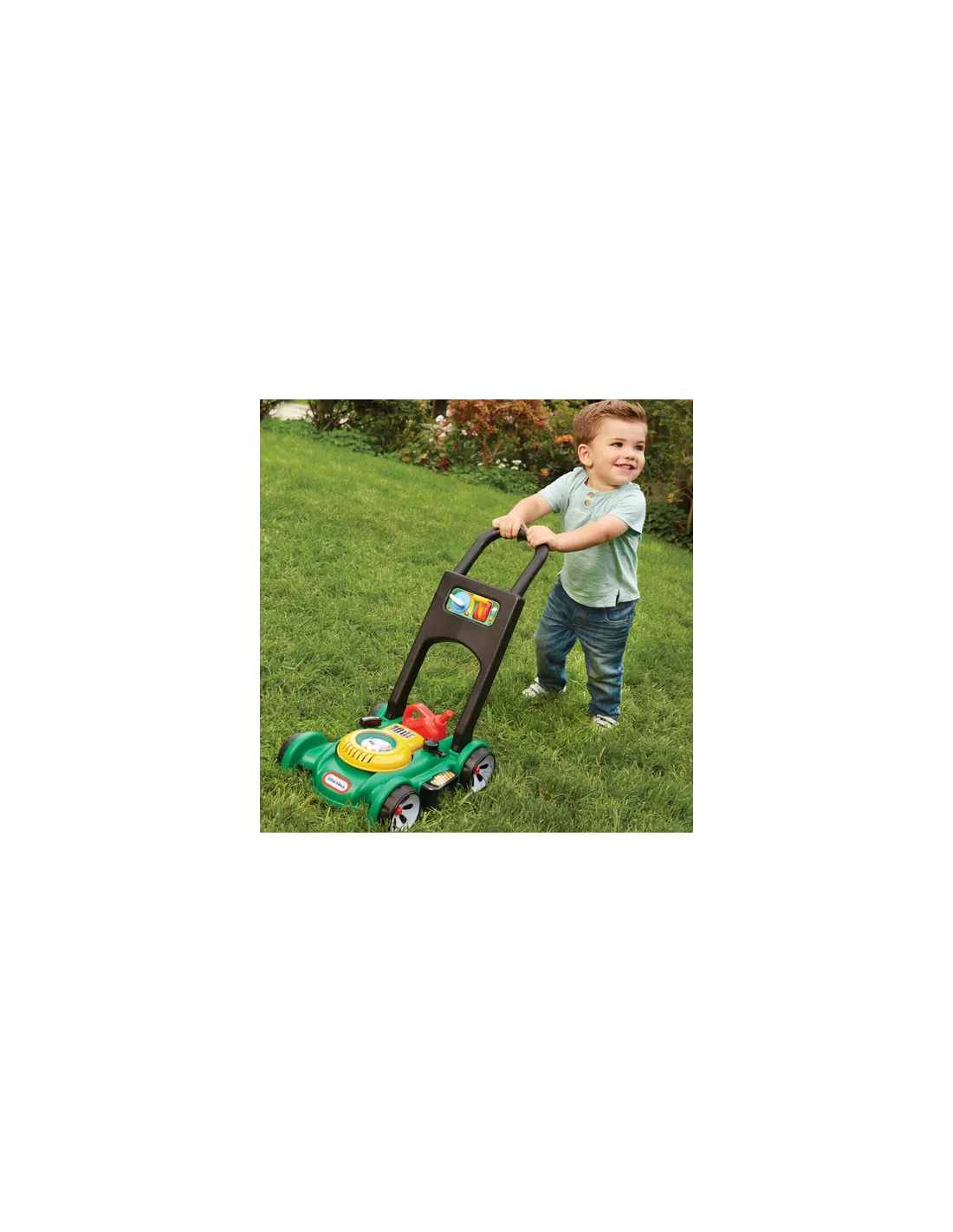 Tagliaerba con simulazione accensione a filo, manovella simulazione variazione di velocità; carino e ben fatto con il rumore generato dal movimento di spinta. Ideale per bimbi piccoli, il tuo bambino adorerà fin da subito questo tagliaerba; sarà naturale per lui imitare i genitori nel giardino di casa che tagliano l'erba ed amerà tutto ciò!