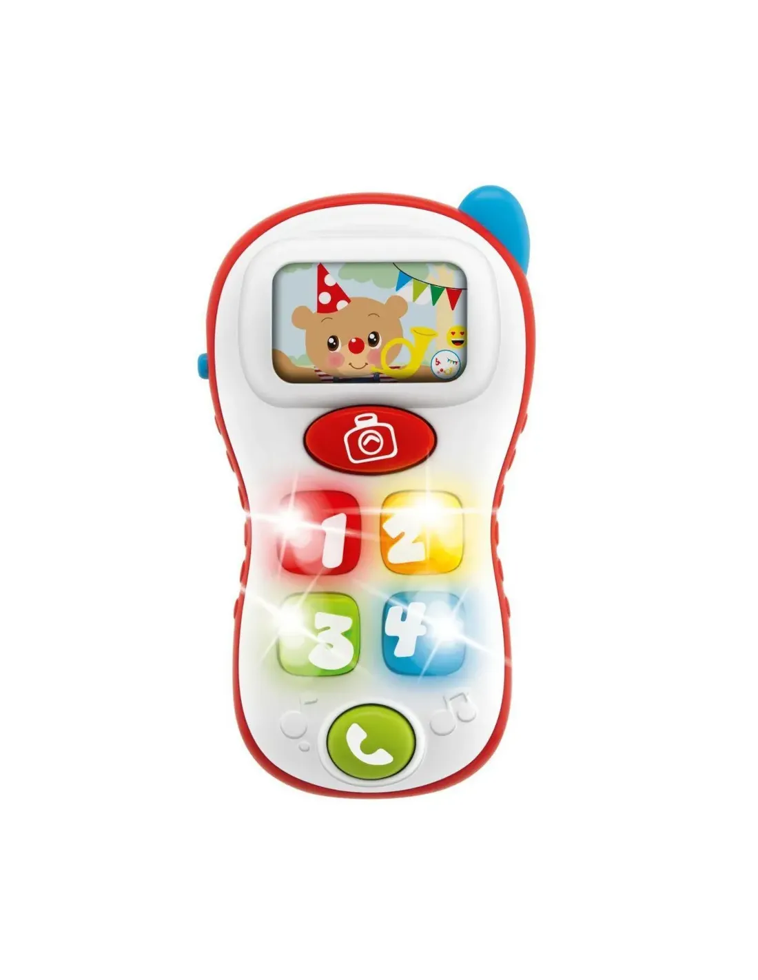Un simpatico telefono musicale e luminoso, con tante sorprese per fare il pieno di scoperte, come i numeri, i colori e la musica; il telefono di Teddy incoraggia il tuo bambino a dire le sue prime parole.. Premendo i 4 pulsanti il tuo piccolo scopre numeri, colori e tante frasi divertenti. Ruotando la testa di Teddy può far finta di nascondersi; muovendo...