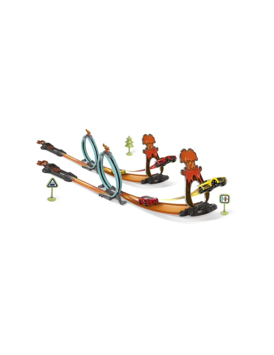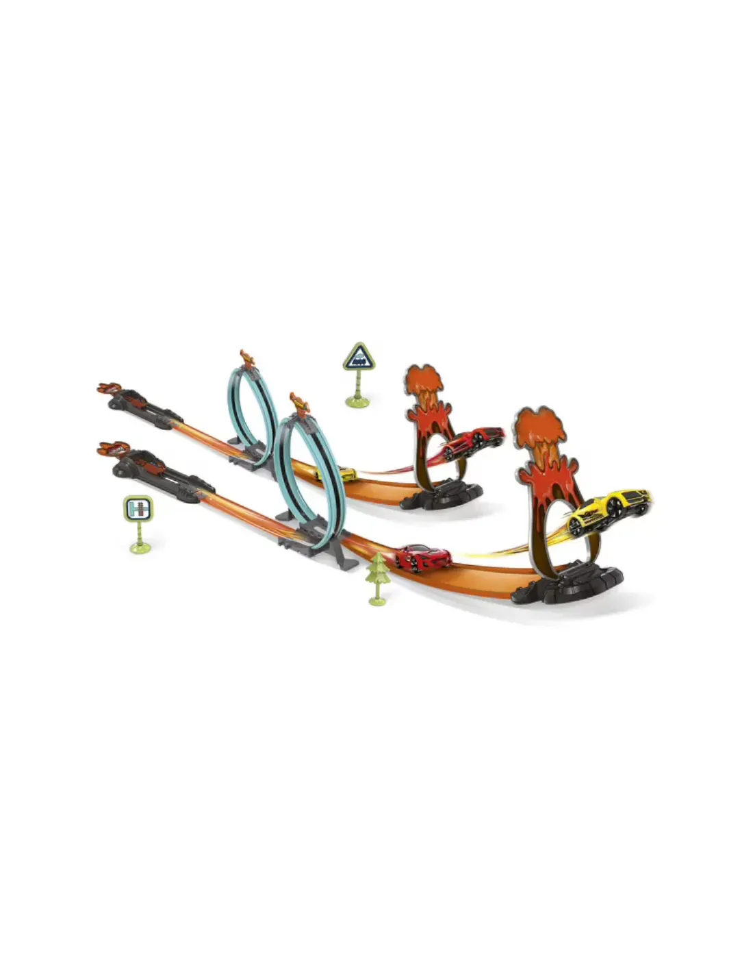 Pista che può essere espansa a piacere: possibilità di creare diversi disegni di tracciati, montaggio con o senza loop, tutto incluso per iniziare immediatamente la gara; in scala 1:43, lunghezza totale della pista 6.3 m; per corse adrenaliniche a tutto turbo!