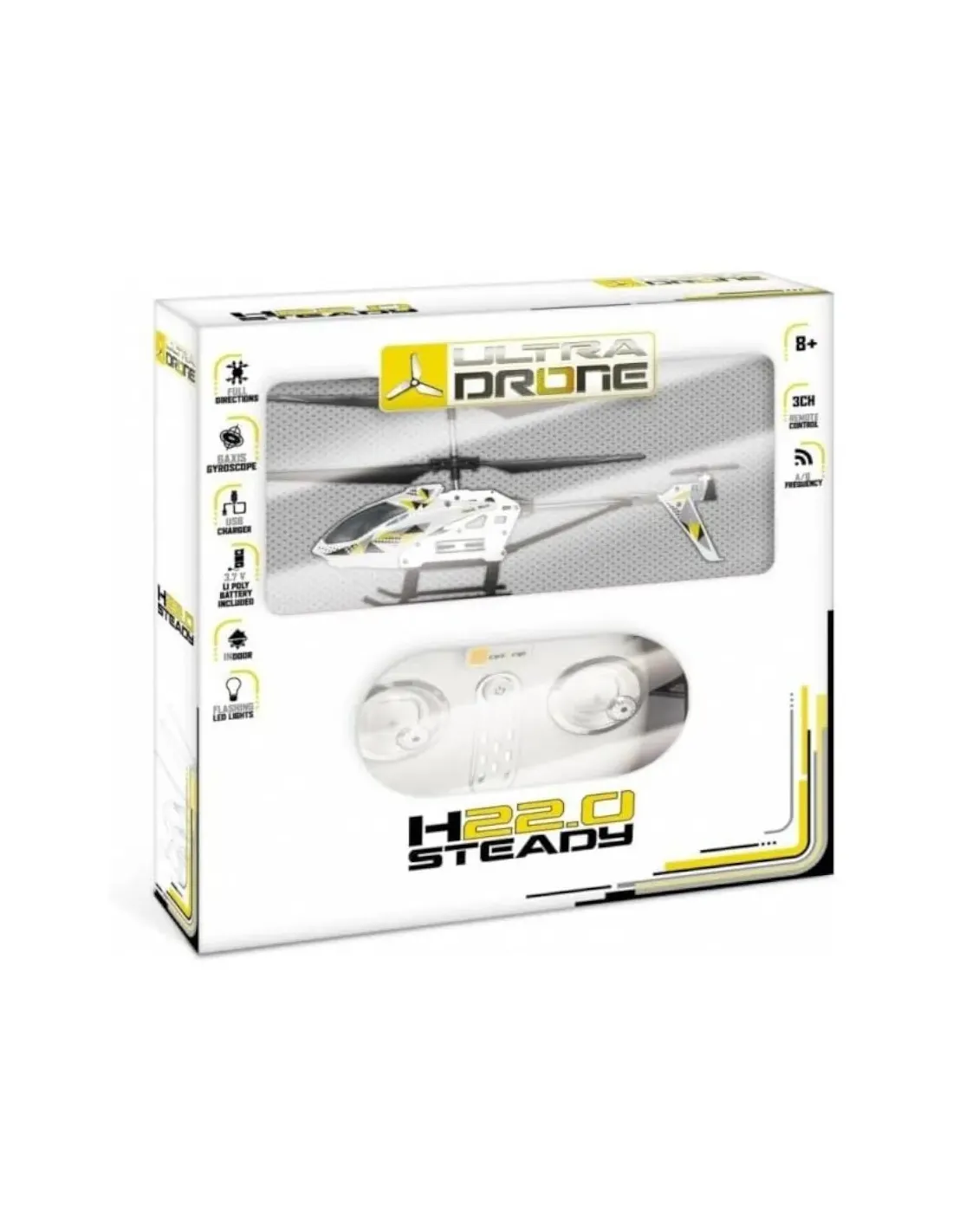 E' un drone telecomandato, dotato di telecomando a 4 CH, che può raggiungere una distanza di controllo remoto di 30 metri; può volare in avanti ed indietro ma ha anche una rotazione acrobatica di 360°.. Premendo il pulsante del telecomando è infatti possibile controllare il drone ed eseguire vari movimenti di volo acrobatico come virate veloci, surf,...