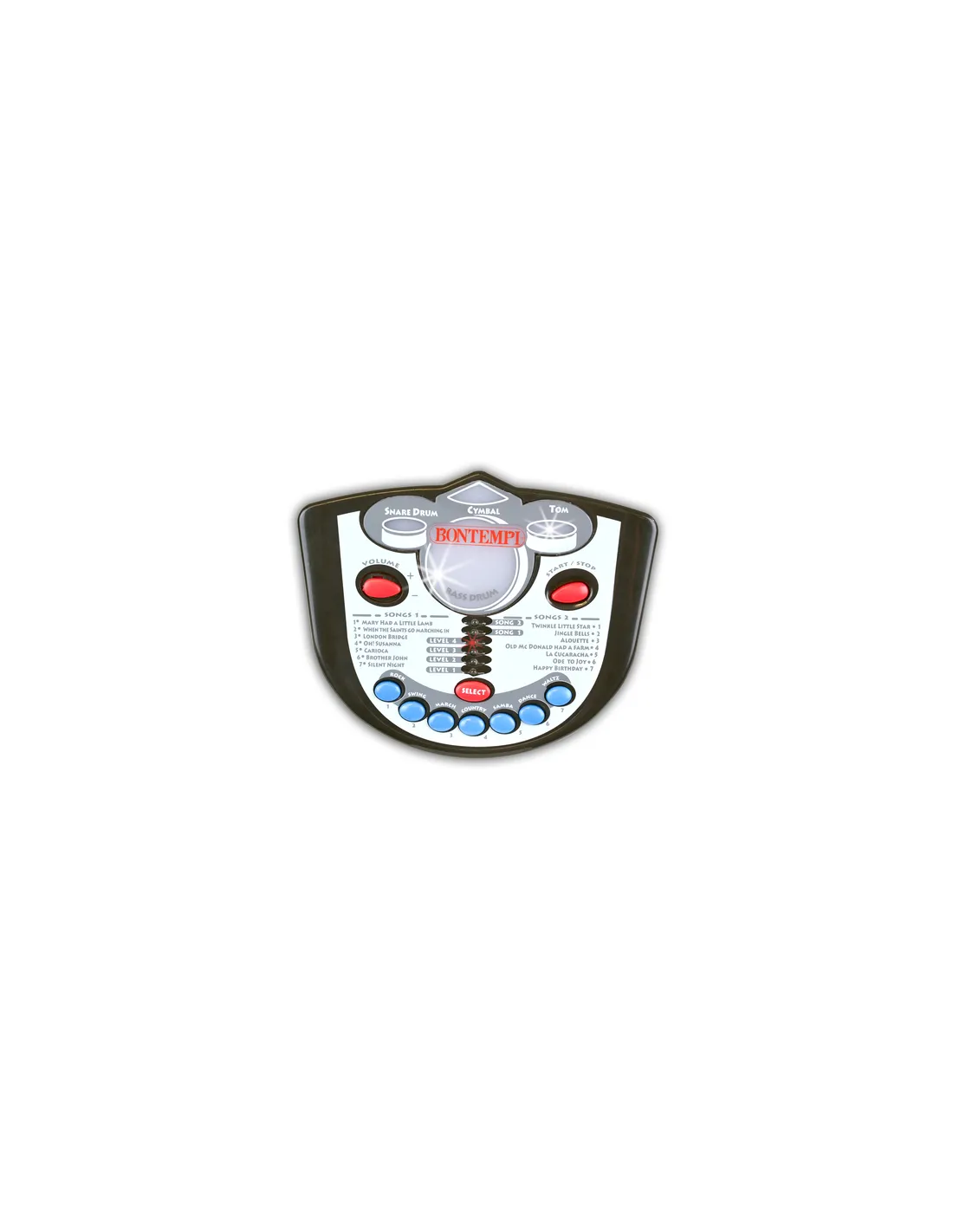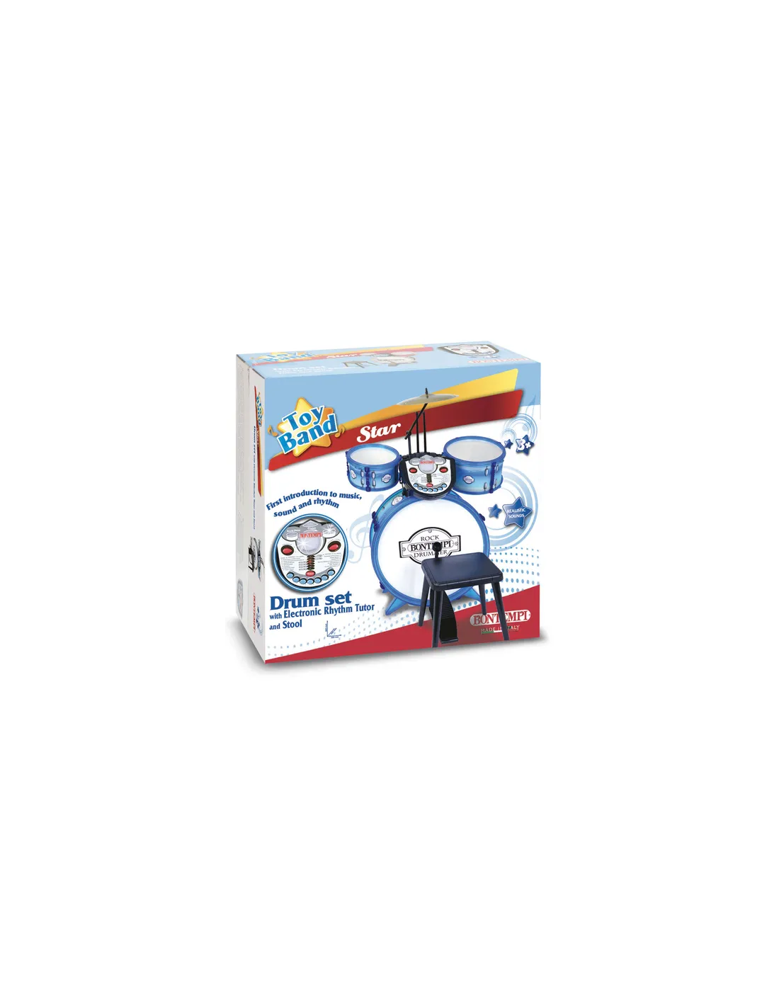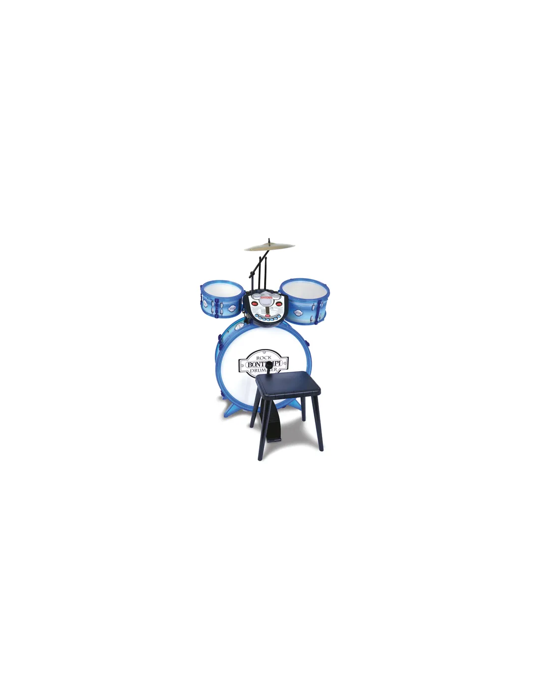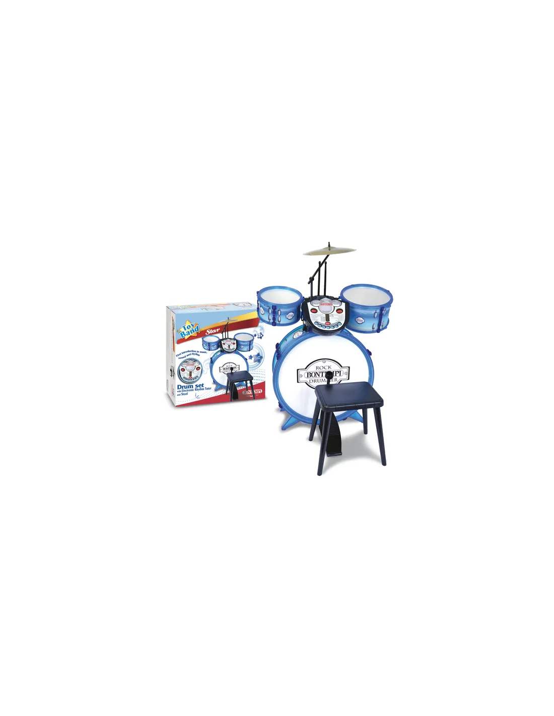 Batteria: grancassa Ø 385 mm. con pedale, 2 tamburi Ø 170 e 210 mm., Piatto metallico Ø 210 mm., 2 bacchette, Suoni realistici, Corredata di sgabello, Dim: 500x500x680 mm
