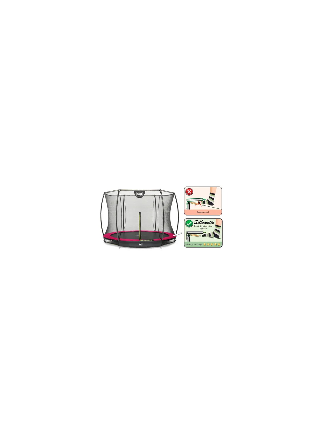 EXIT Silhouette ground trampoline ø305cm with safety net - pink Esterno Rotondo Molla elicoidale Trampolino interrato