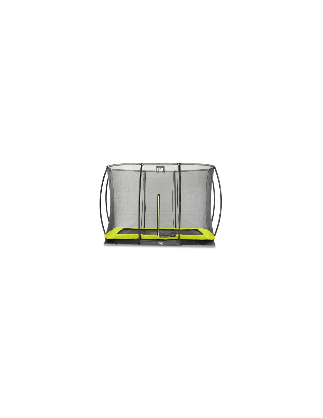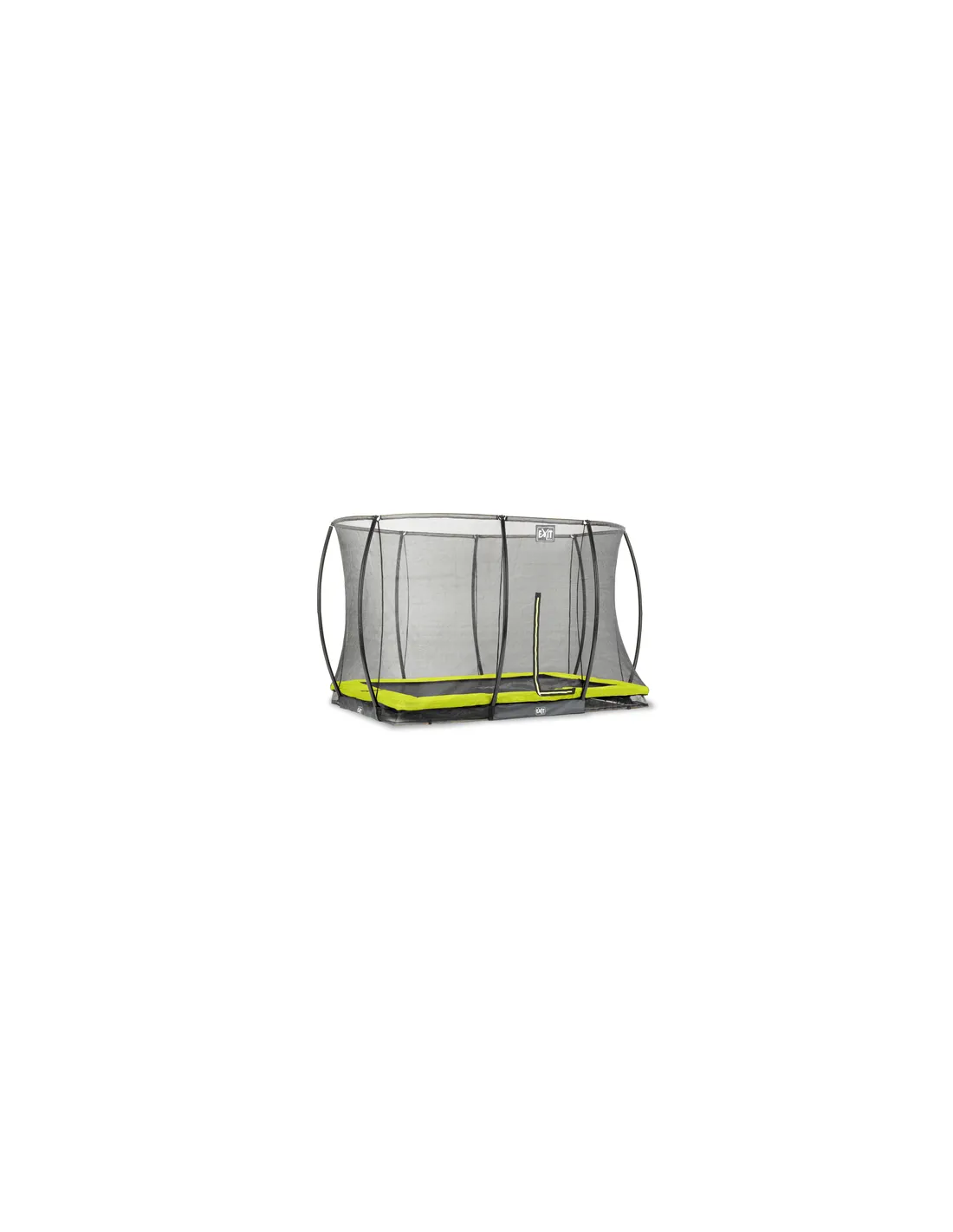 EXIT Silhouette ground trampoline 214x305cm with safety net - green. Tipo di prodotto: Trampolino interrato, Posizionamento supportato: Esterno, Peso massimo per utente: 120 kg, Forma: Rettangolare, Età consigliata (min): 3 anno/i, Rete di sicurezza, numero di primavere: 72, Numero di gambe: 4 gamba/gambe, Assemblaggio necessario, Colore del prodotto: Lime