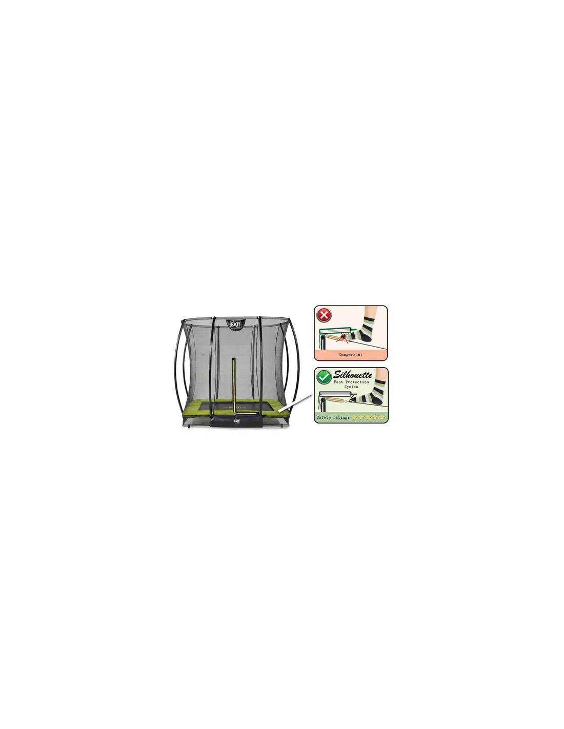 EXIT Silhouette. Tipo di prodotto: Trampolino interrato, Posizionamento supportato: Esterno, Peso massimo per utente: 100 kg, Forma: Rettangolare, Età consigliata (min): 3 anno/i, Rete di sicurezza, numero di primavere: 44, Numero di gambe: 4 gamba/gambe, Assemblaggio necessario, Colore del prodotto: Nero, Verde