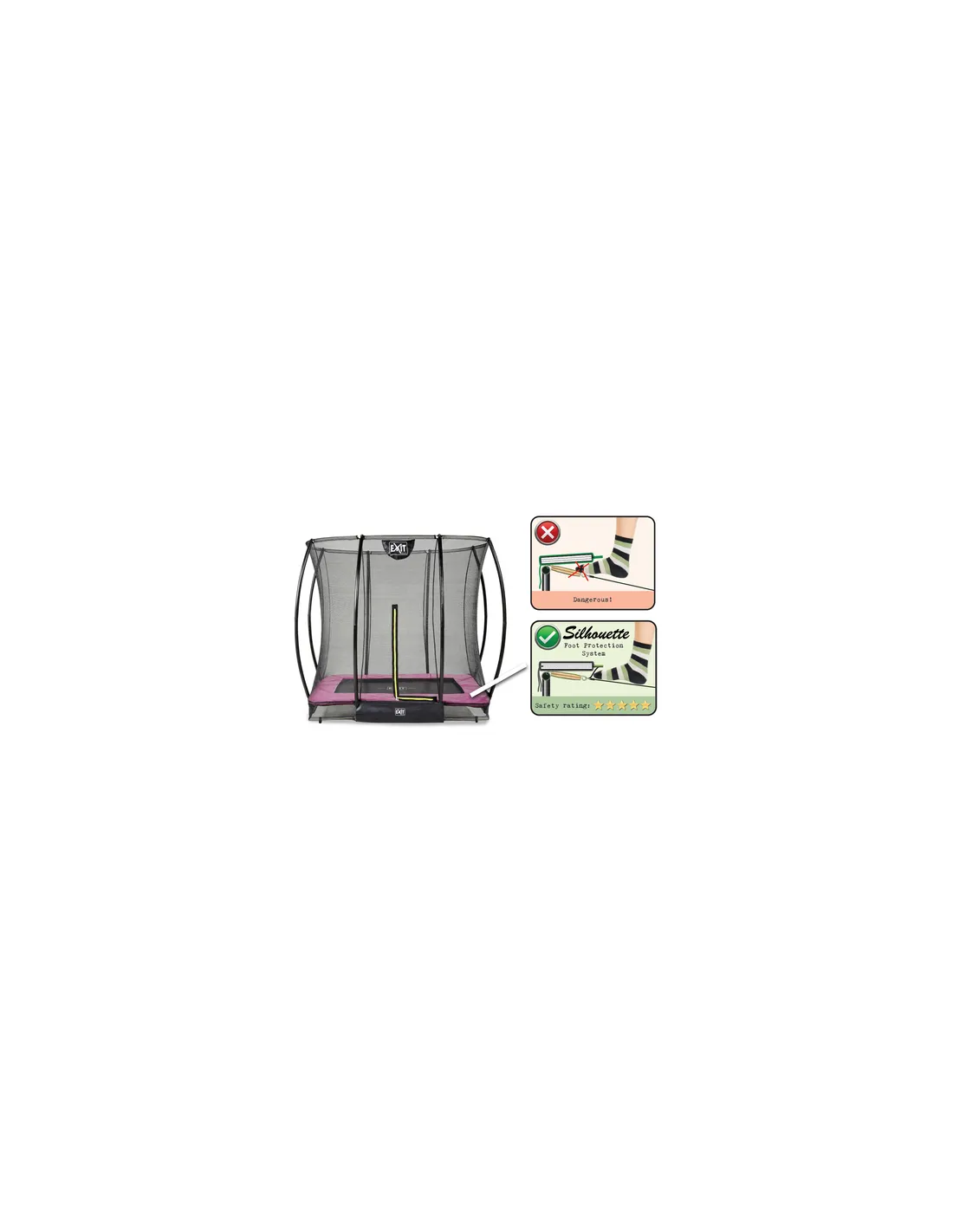 EXIT Silhouette. Tipo di prodotto: Trampolino interrato, Posizionamento supportato: Esterno, Peso massimo per utente: 100 kg, Forma: Rettangolare, Età consigliata (min): 3 anno/i, Rete di sicurezza, numero di primavere: 44, Numero di gambe: 4 gamba/gambe, Assemblaggio necessario, Colore del prodotto: Nero, Rosa