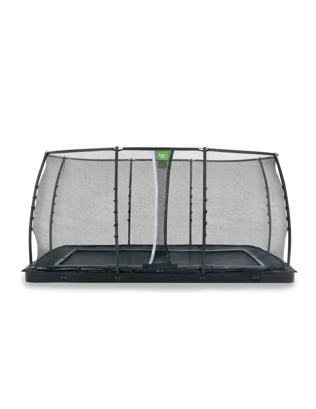 Il trampolino EXIT Dynamic a livello del suolo è un trampolino rettangolare, nero opaco di assoluta qualità, completamente scavato nel terreno. Questo robusto trampolino è dotato di una rete di sicurezza, per saltare spensieratamente. I bambini con molta esperienza di salto porteranno le loro abilità al livello successivo senza problemi, perché questo trampolino ha molle a doppia conica di 25 cm di lunghezza. E anche il trampolino rimarrà saldamente in posizione anche con i salti più alti, perché il binario superiore ultra-stabile ha uno spessore di 42 mm. Inoltre è zincato e verniciato a polvere per una protezione ottimale contro gli agenti atmosferici e la ruggine. Il suo lussuoso aspetto opaco con dettagli di colore complementari aggiunge al suo aspetto elegante e moderno. E l'ulteriore vantaggio del trampolino a livello del suolo è che l'imbottitura è allo stesso livello dell'erba, in modo che il trampolino sia completamente integrato nel resto del giardino. Oltre al fatto che questo trampolino è di tipo basso nel terreno, è garantita una protezione extra grazie alla rete di sicurezza con porta sovrapposta. E i due anelli in fibra di vetro assicurano che la rete rimanga sempre tesa mentre i pali sono dotati di uno strato protettivo di schiuma.